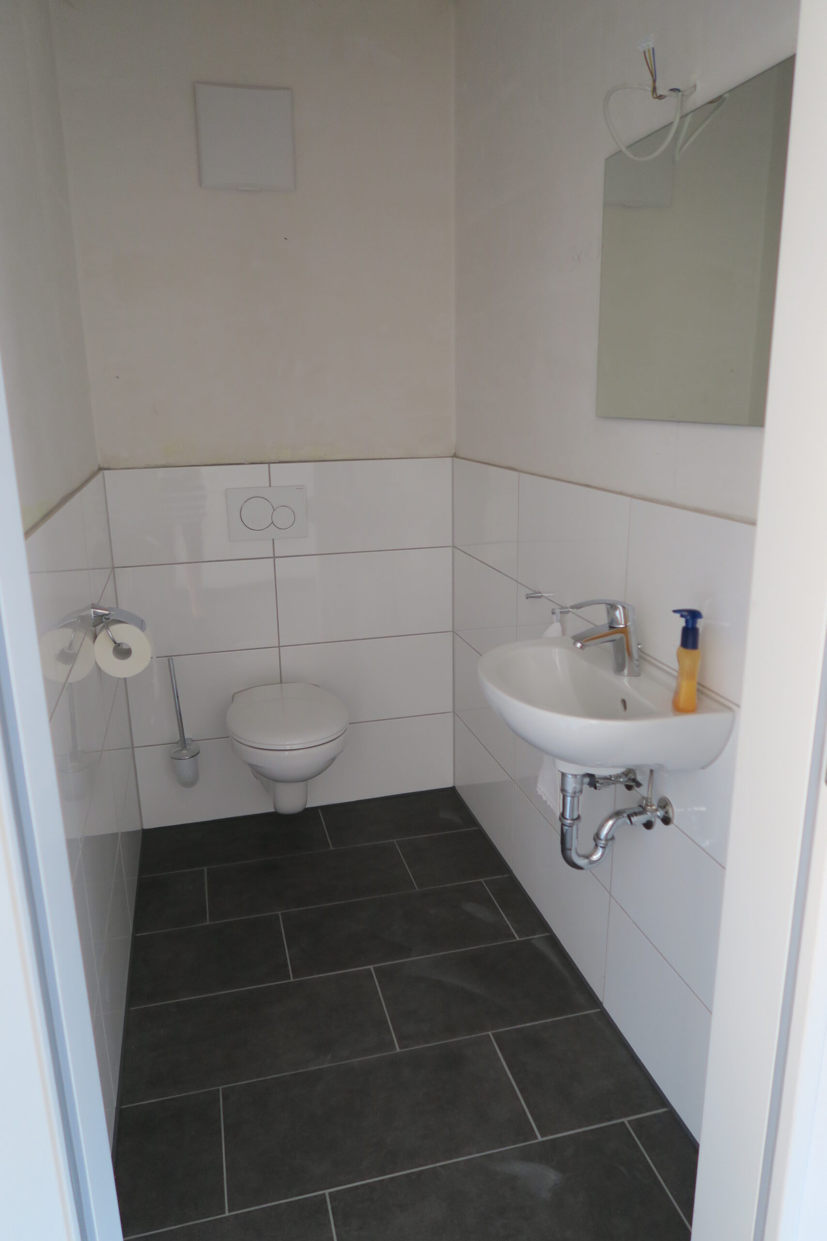 Weiterlesen Küche: Fliesenspiegel großformatig weiß 30/60cm im Bereich der Küchenzeile. Bad und Gäste-WCs : Wände halbhoch/ im Duschbereich raumhoch großformatig weiß gefliest.